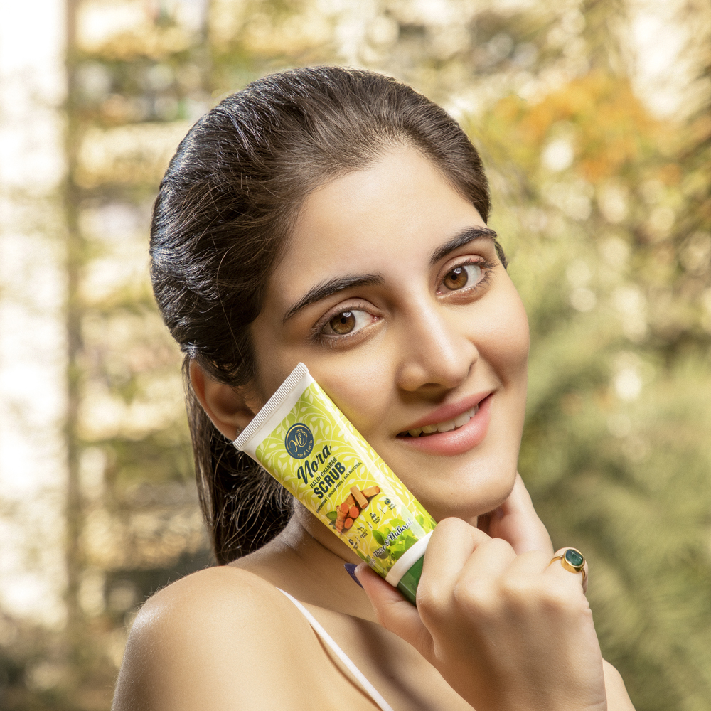 Combining the richness of both, Nora: The Haldi Chandan face scrub is your companion to bring timeless glow and goodness to your skin.